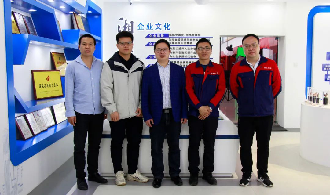 技術引領,科技創新,發揮高校院所創新源頭作用,促進產、學、研深度合作。4月22日,中南大學粉末冶金研究院副教授、博士生導師雷前、博士后賴瑞林和博士后顧景洪三位專家蒞臨湘聯電纜,在電力電纜行業的技術研究、人才培養等方面進行洽談交流。