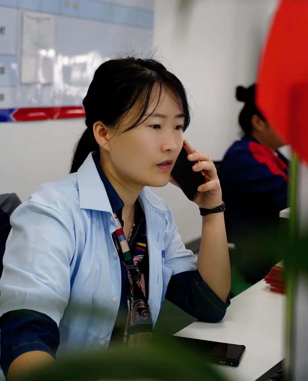 ▲楊祁矞正在與同事協商解決客戶問題