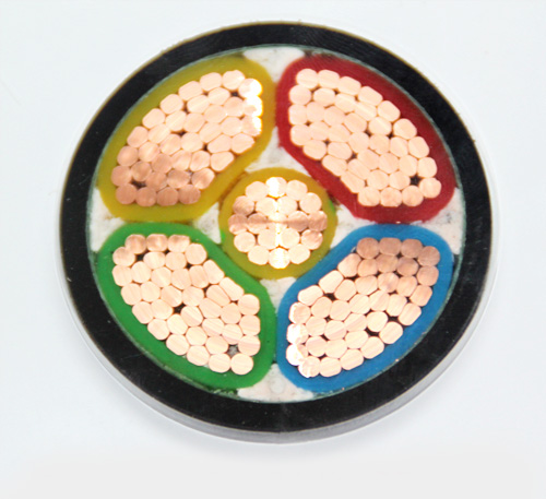 (5)外護層: 23——雙層防腐鋼帶繞包銷裝聚乙烯外被層; 33——單層細鋼絲鎧裝聚乙烯被層; 43——單層粗鋼絲鎧裝聚乙烯被層 ; 53——單層鋼帶皺紋縱包鎧裝聚乙烯外被層; 553——雙層鋼帶皺紋縱包鎧裝聚乙烯外被層